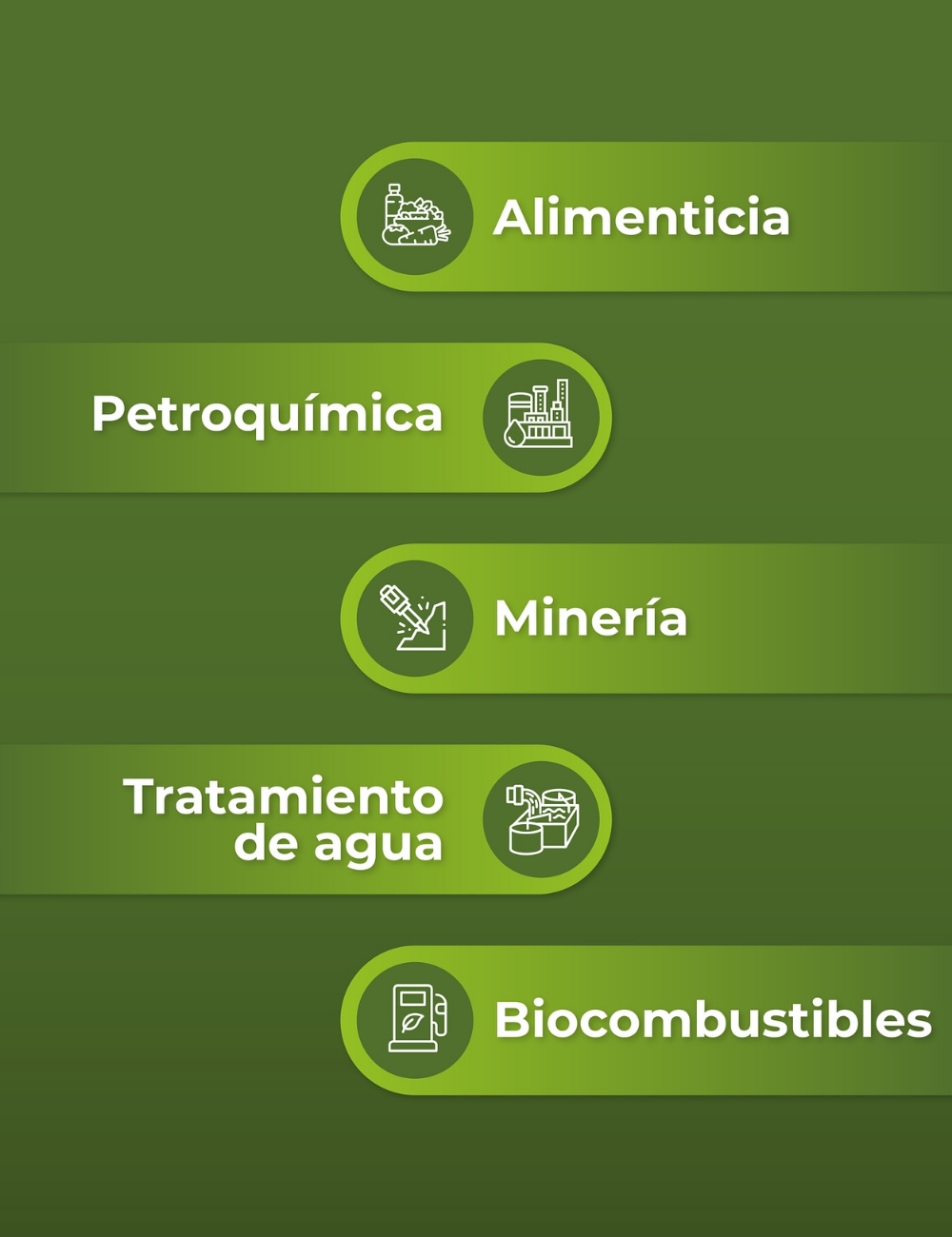 Nuestras soluciones se integran en petróleo y petroquímica, industria alimentaria, biocombustibles, reciclaje, aguas residuales y más, con 35+ modelos aplicados a 100+ procesos distintos.